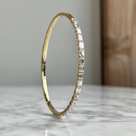14K Emerald Cut Diamond Flexible Bangle Bracelet 2.50CTW