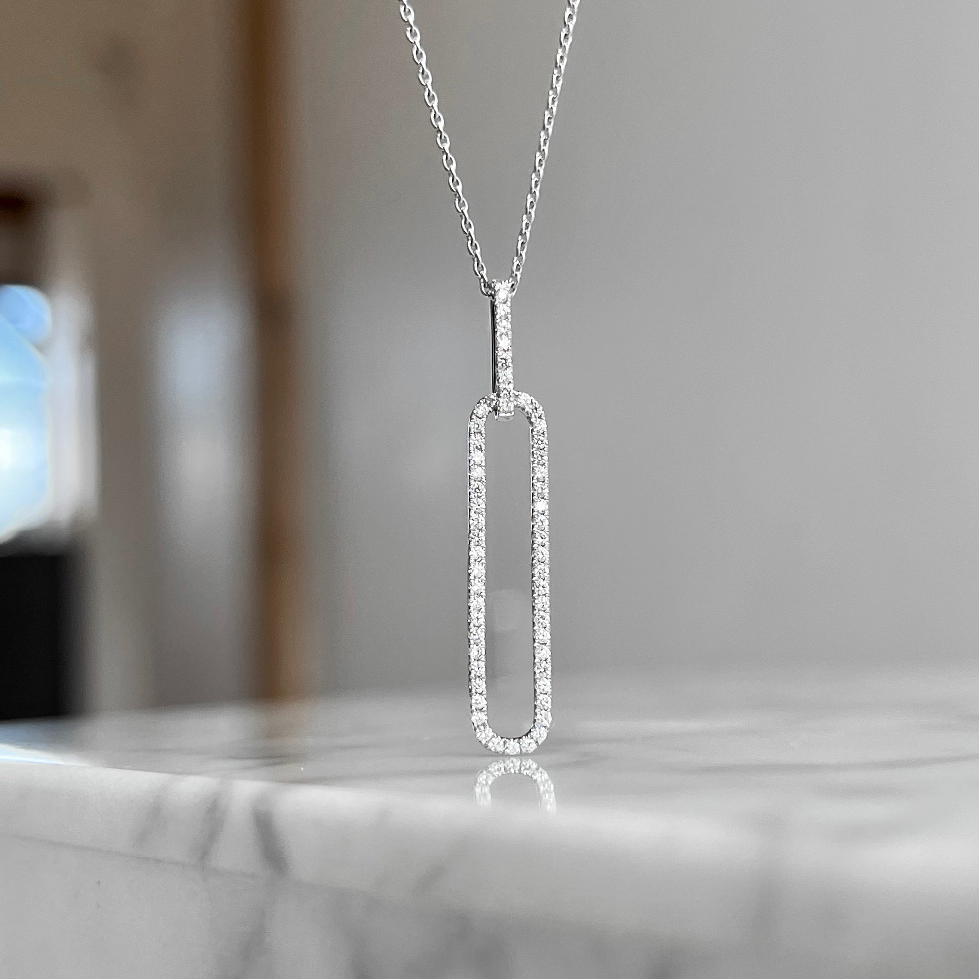 14K White Gold Diamond Paperclip Link Necklace
