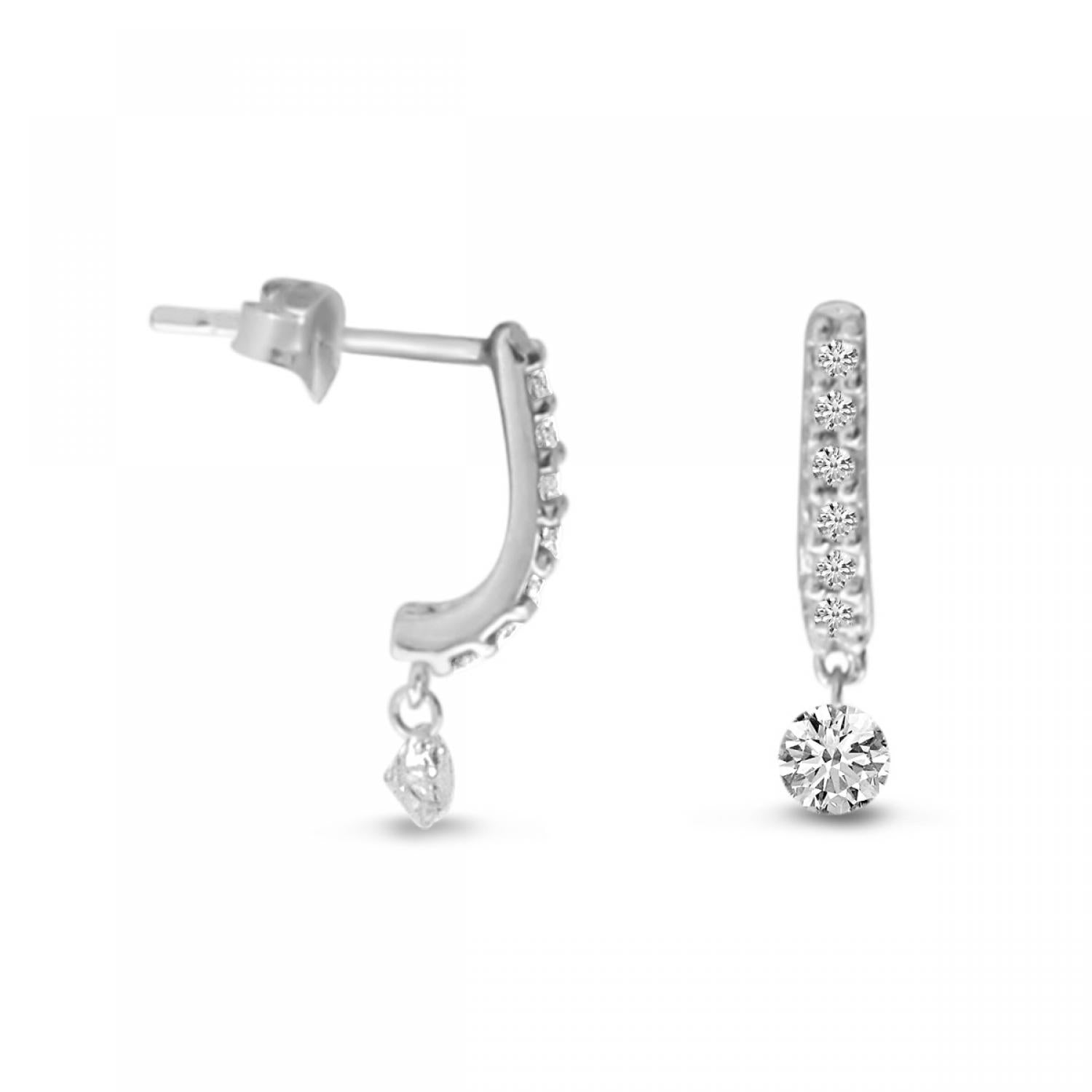 14K White Hold "J" Half Huggie Floating Diamond Earrings