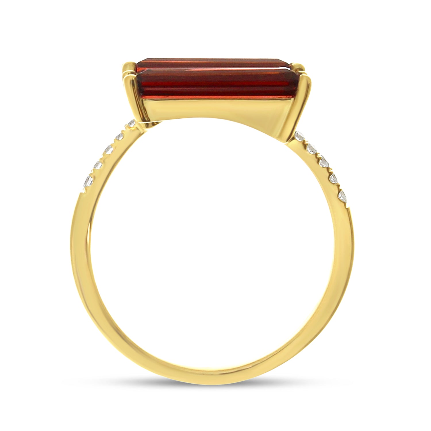 14K Yellow Gold Baguette Garnet Double and Diamond East West Ring