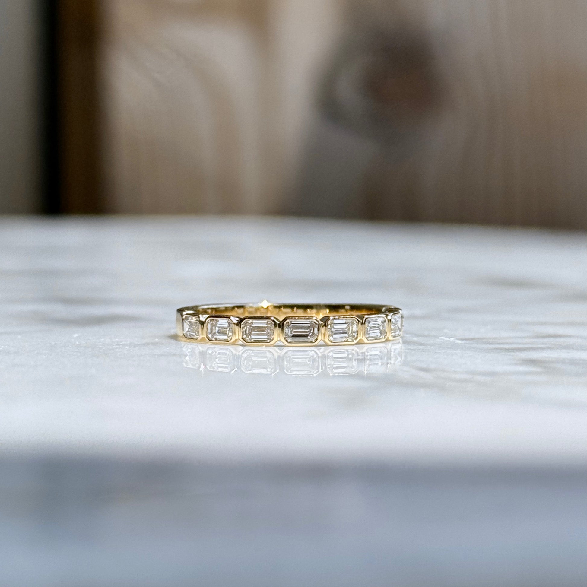 14K Yellow Gold Bezel Emerald Cut Diamond Wedding Band