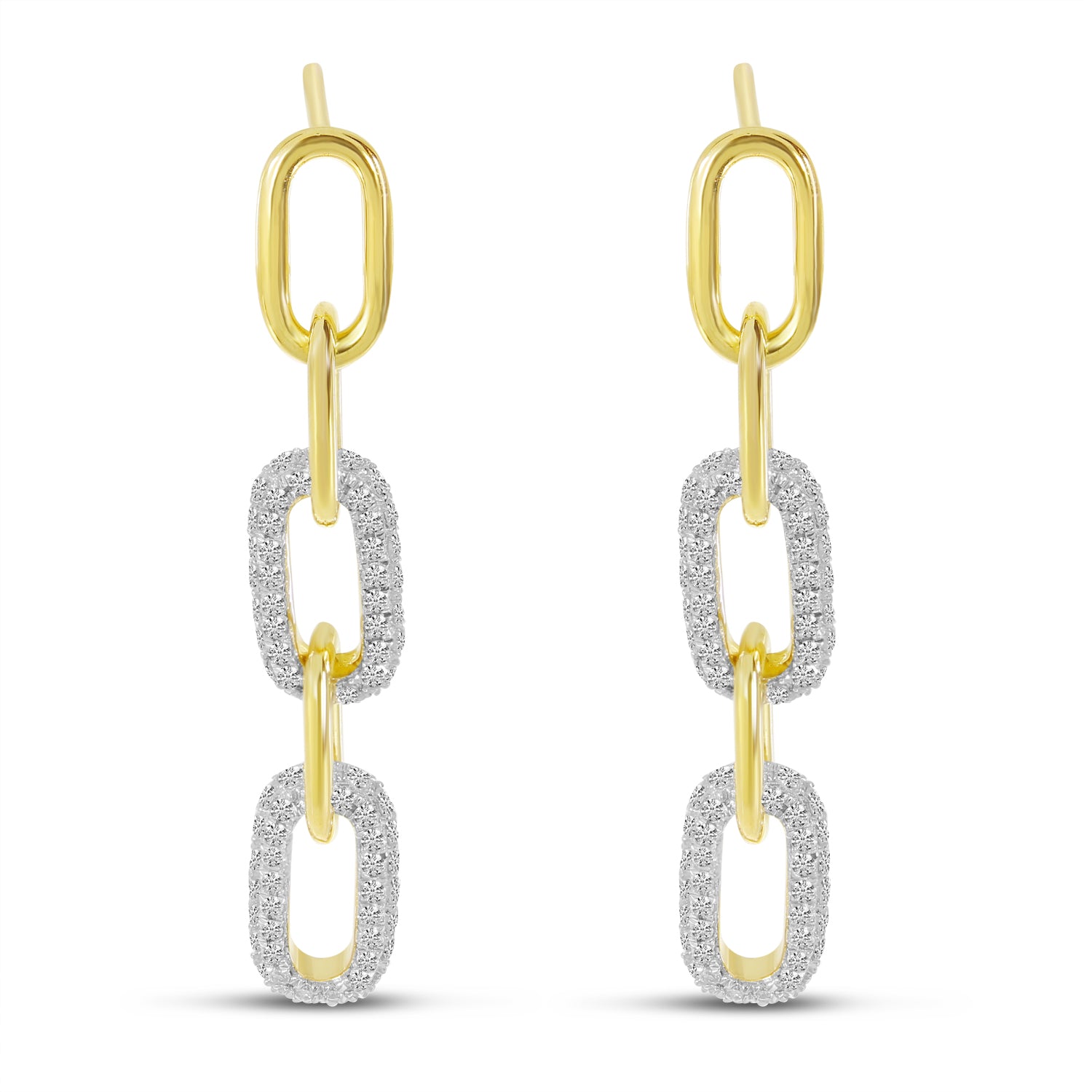 14K Yellow Gold Pavé Diamond Paper clip Link Earrings 56/100CTW