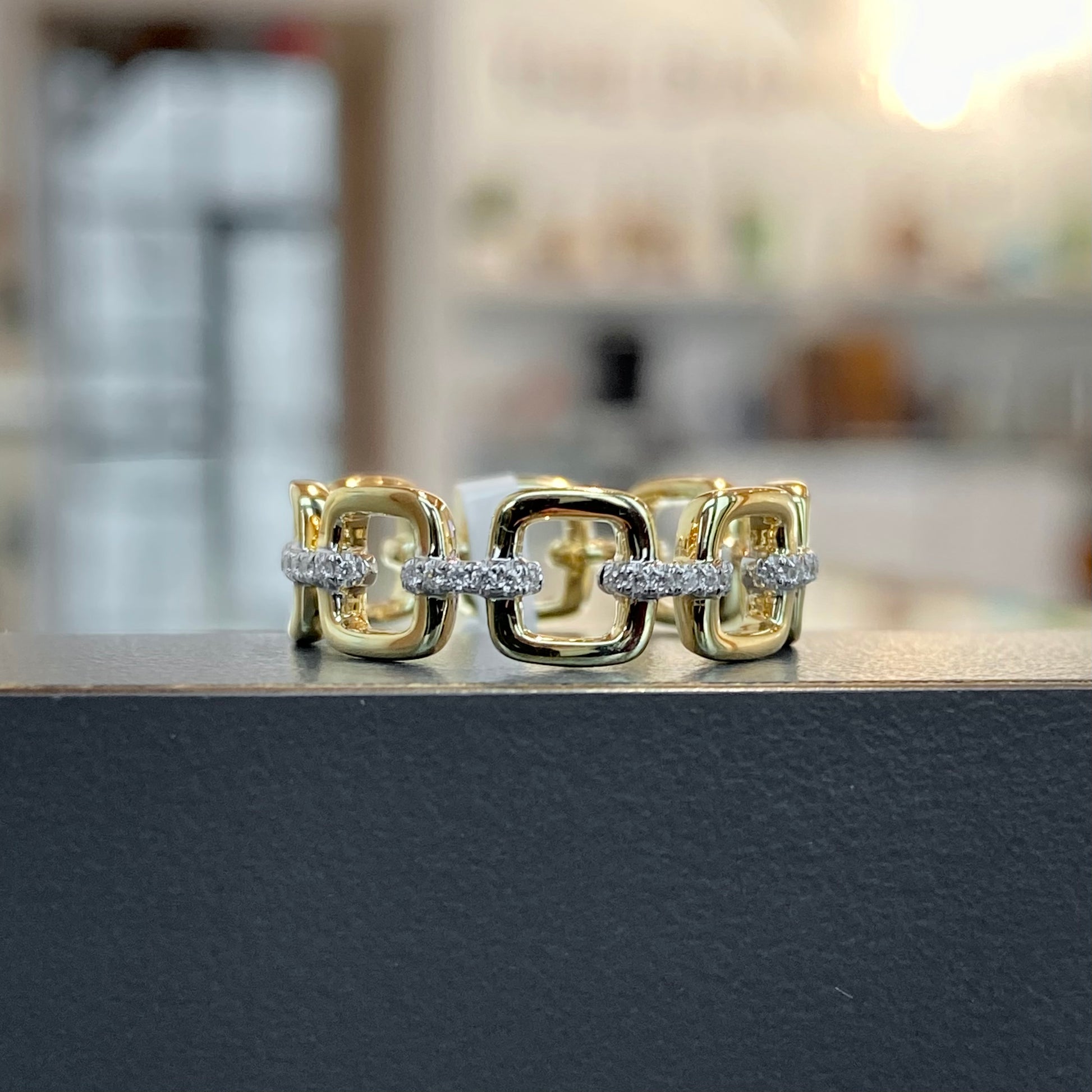 14K Yellow Gold Two-Tone Diamond Square Link Ring 13/100CTW