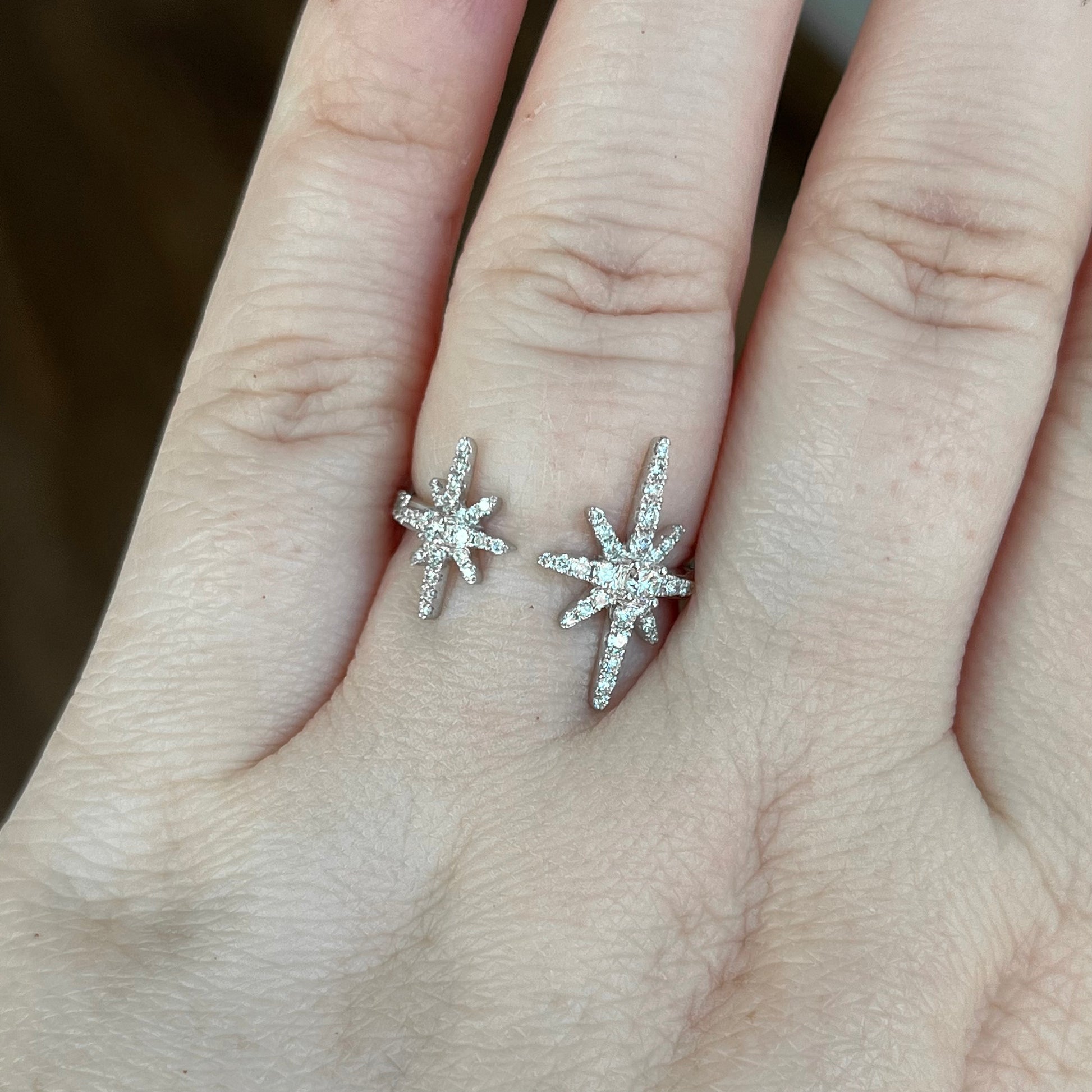 18K White Gold Open Concept Double Celestial Diamond Star Ring 47/100CTW