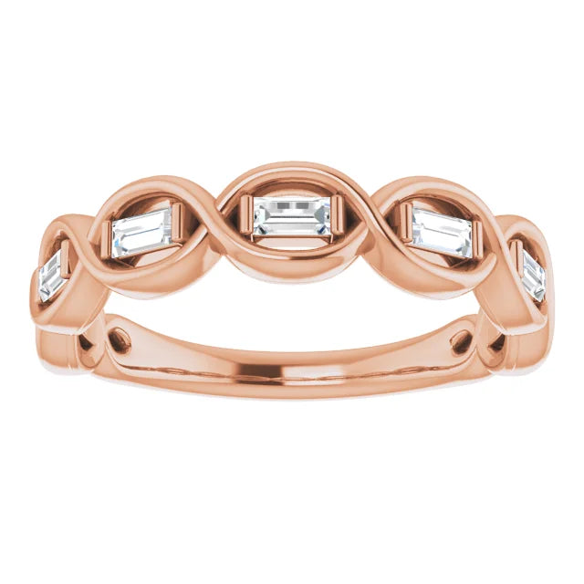 Natural Diamond Baguette Twisted Stackable Wedding Band 1/4CTW